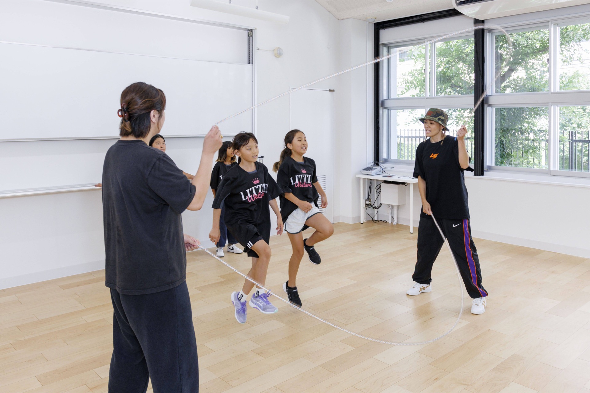 ダブルダッチは、2本のロープを使ってみんなで跳ぶリズムジャンプ。楽しみながら、体力・リズム感・協調性を自然に伸ばすことができます。仲間と一緒に「できた!」を積み重ねることで、自信や笑顔もどんどん増えていきます。運動が苦手なお子さまも大歓迎!安心して楽しく続けられる習い事です。