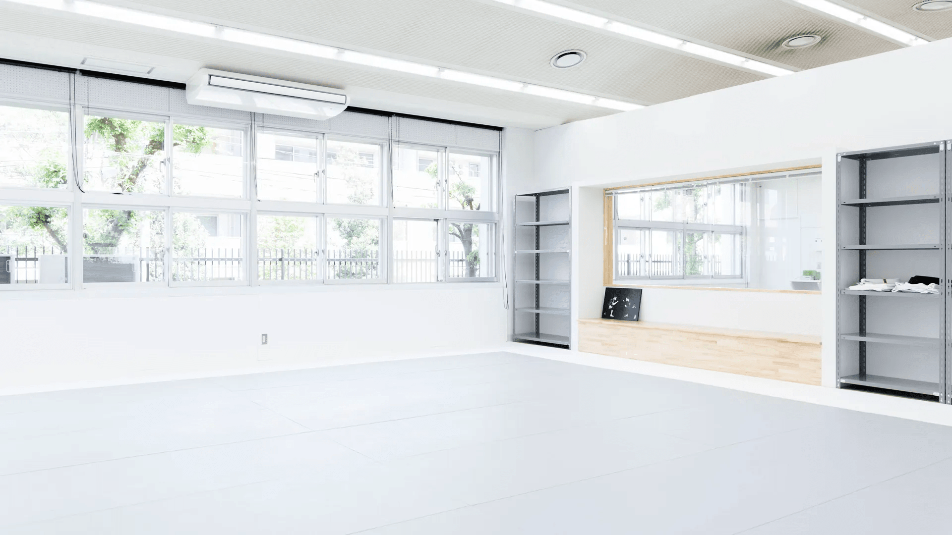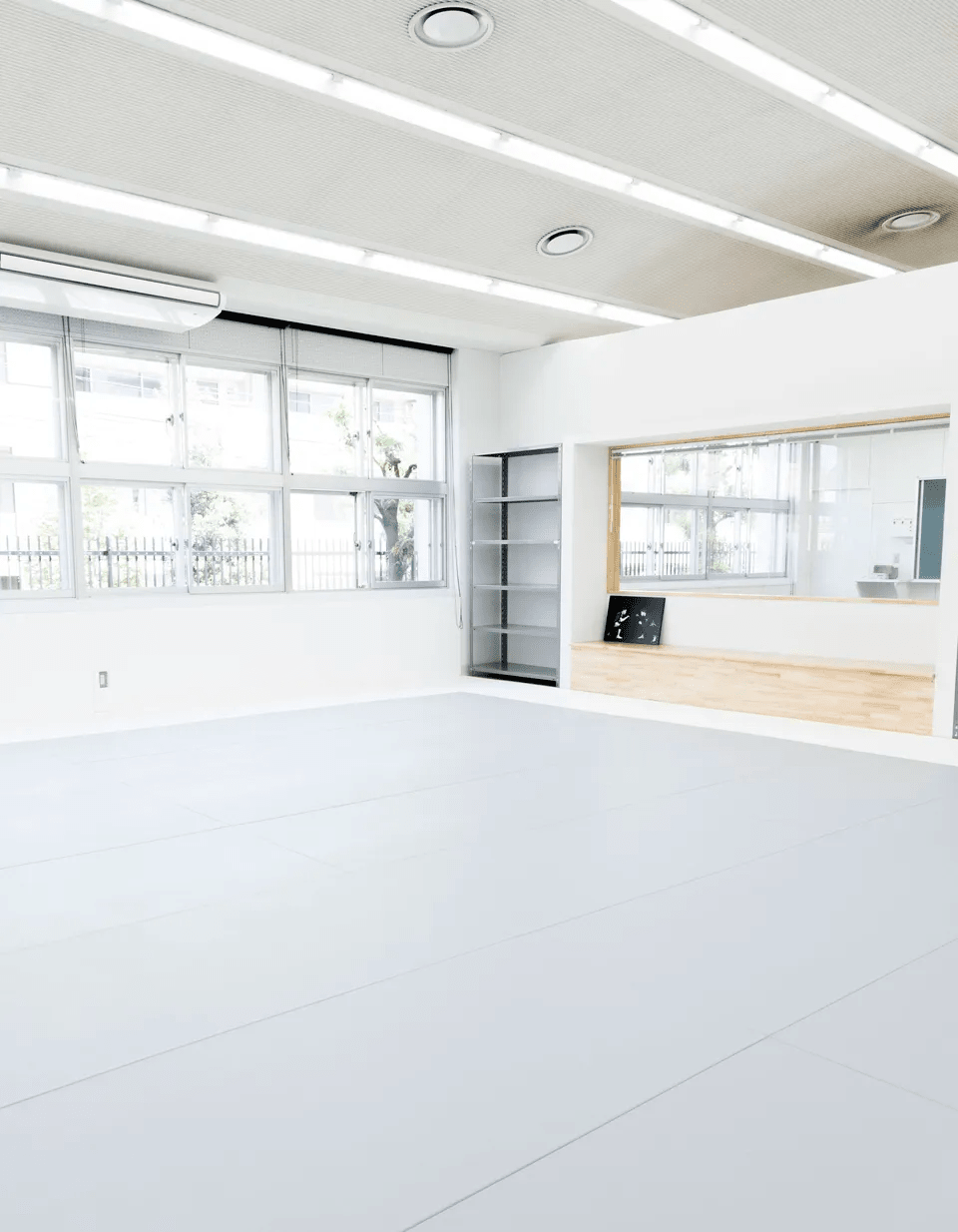 柔術スクールで使用する、床や壁にマットが敷かれた66.7㎡(約40帖)のスタジオです。柔術やヨガだけでなく、お子様や高齢者の方の運動にもご利用いただけます。